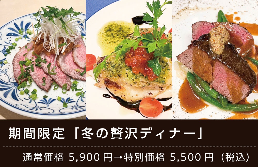 期間限定「冬の贅沢ディナー」通常価格5,900円 → 特別価格5,500円(税込)
