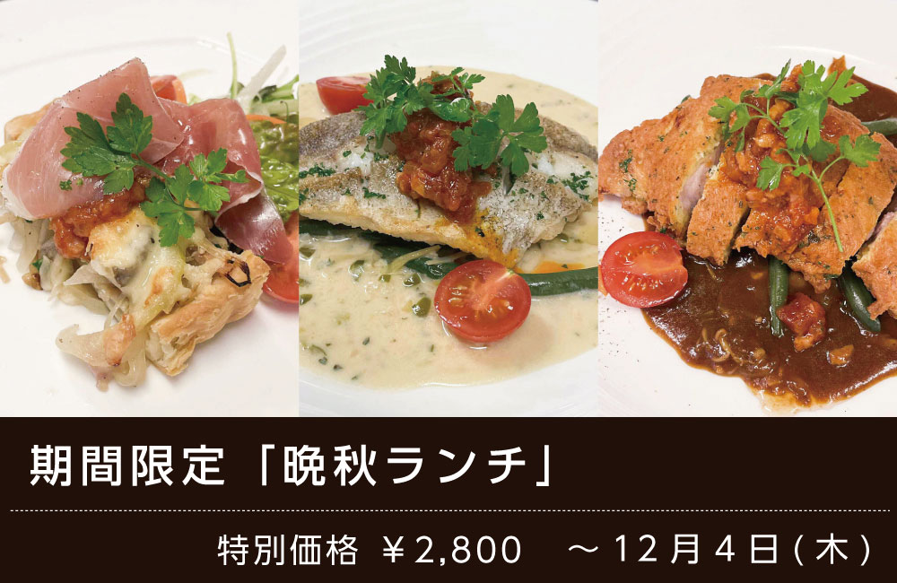期間限定「晩秋ランチ」特別価格2,800円!12月4日(木)まで