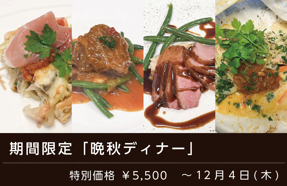 期間限定「晩秋ディナー」特別価格5,500円!12月4日(木)まで